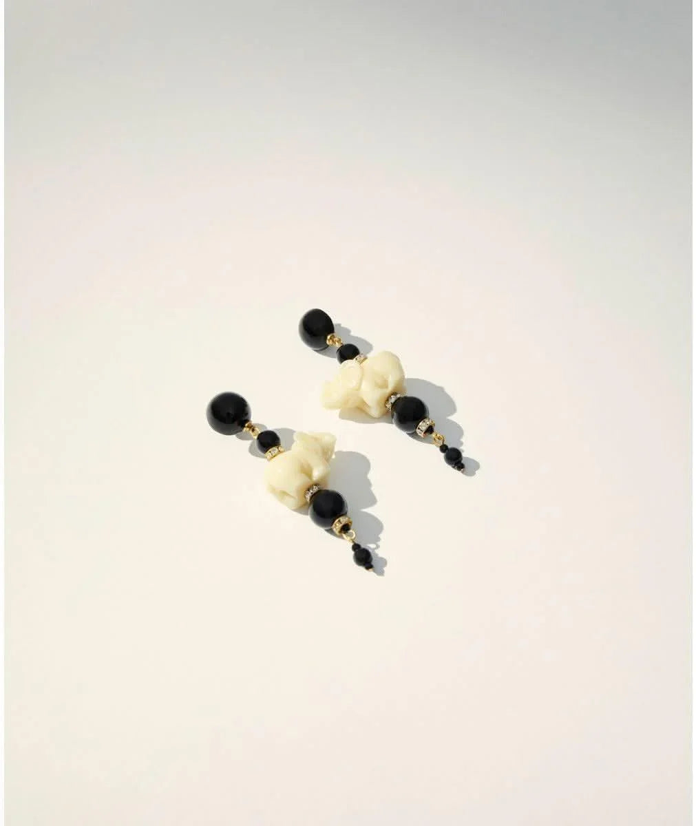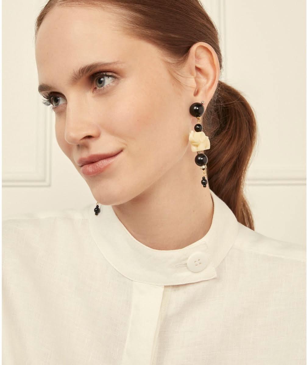 Brinco em botão de resina com pingente de elefante e detalhe de cristais; Fechamento por tarraxa; Fabricado nacionalmente. Cuidado e conservação: evitar o contato com umidade, água e produtos corrosivos como cremes e perfumes.