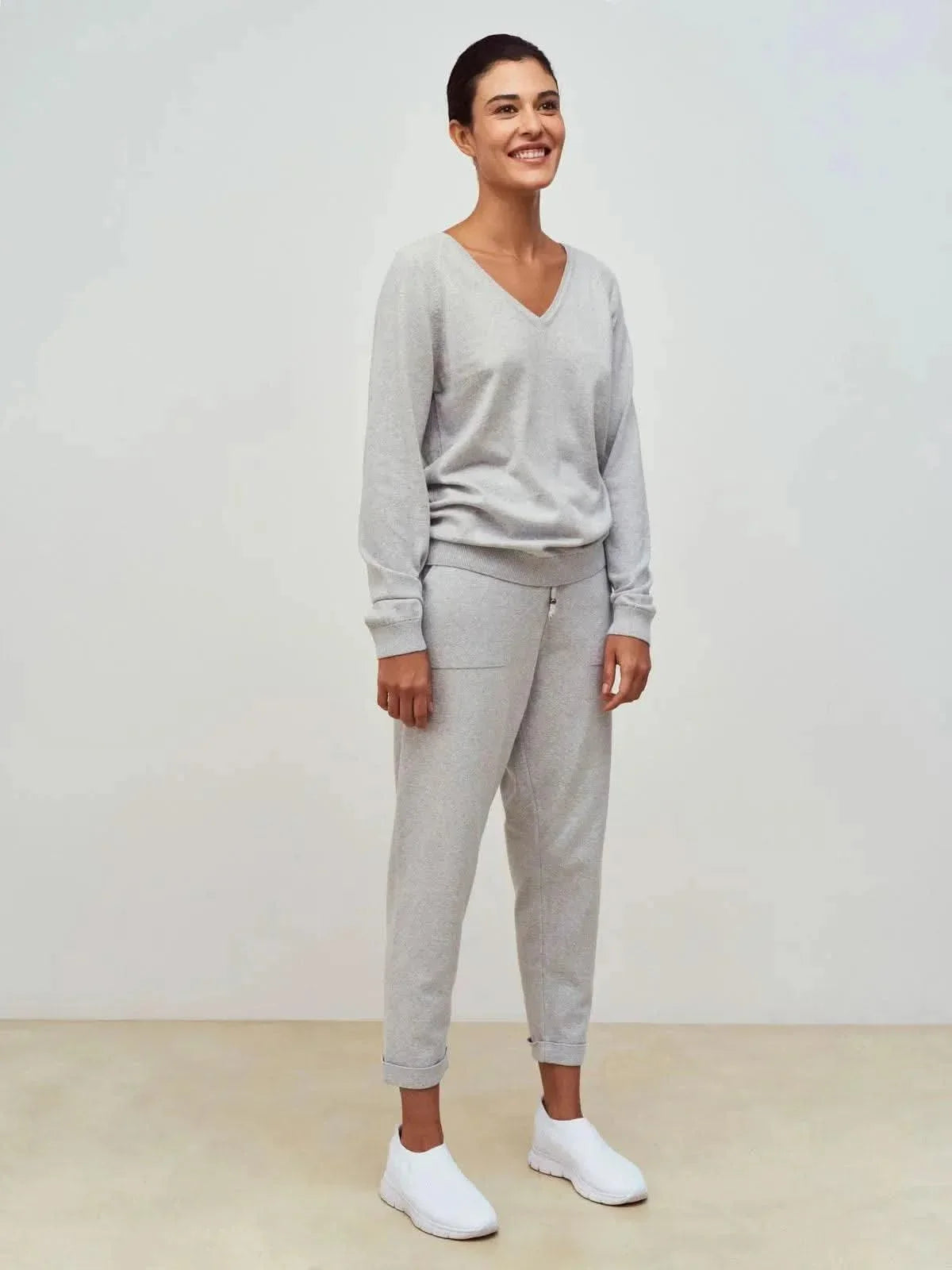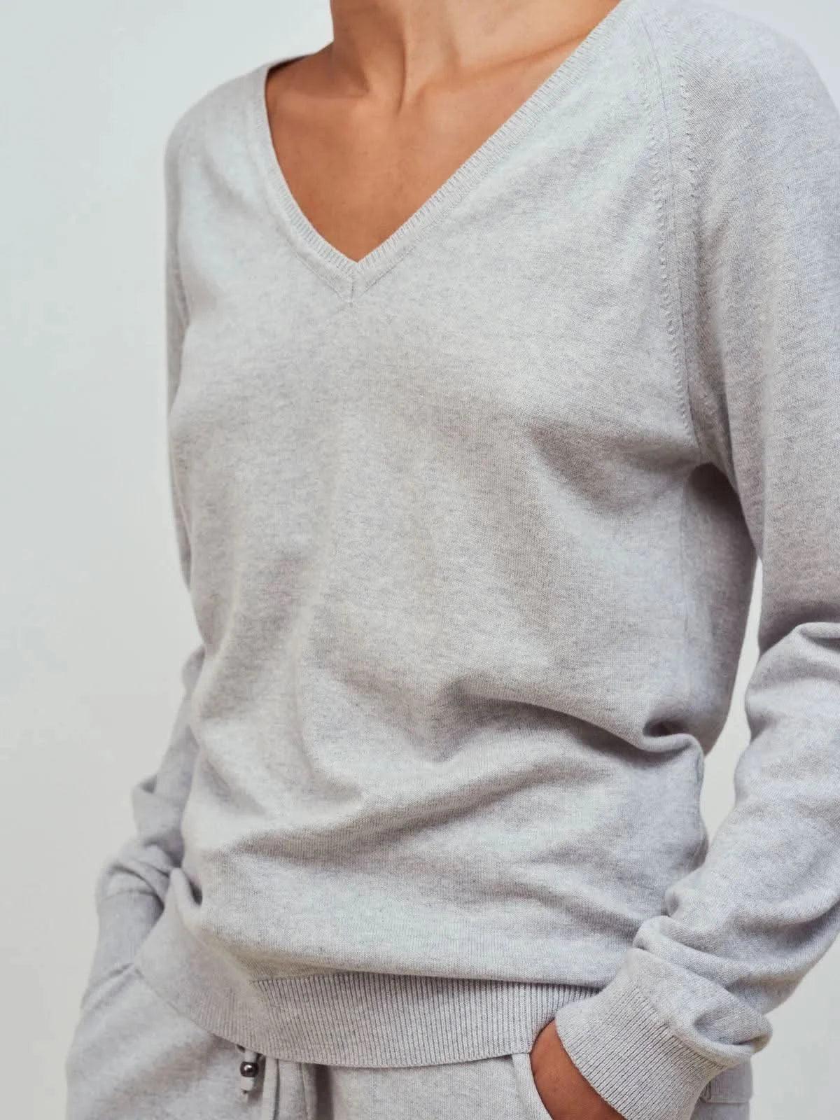 Um clássico que nunca sai de moda. O suéter de gola em V é feito em trama leve com fios 100% algodão. A peça tem modelagem clássica e pode ser usada em qualquer temperatura. Combine com a calça de tricô no mesmo tom para criar um look monocromático atemporal.