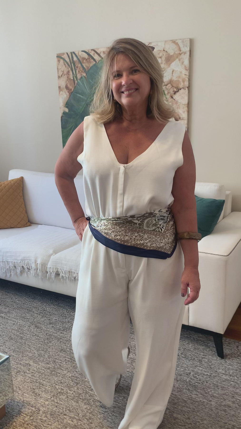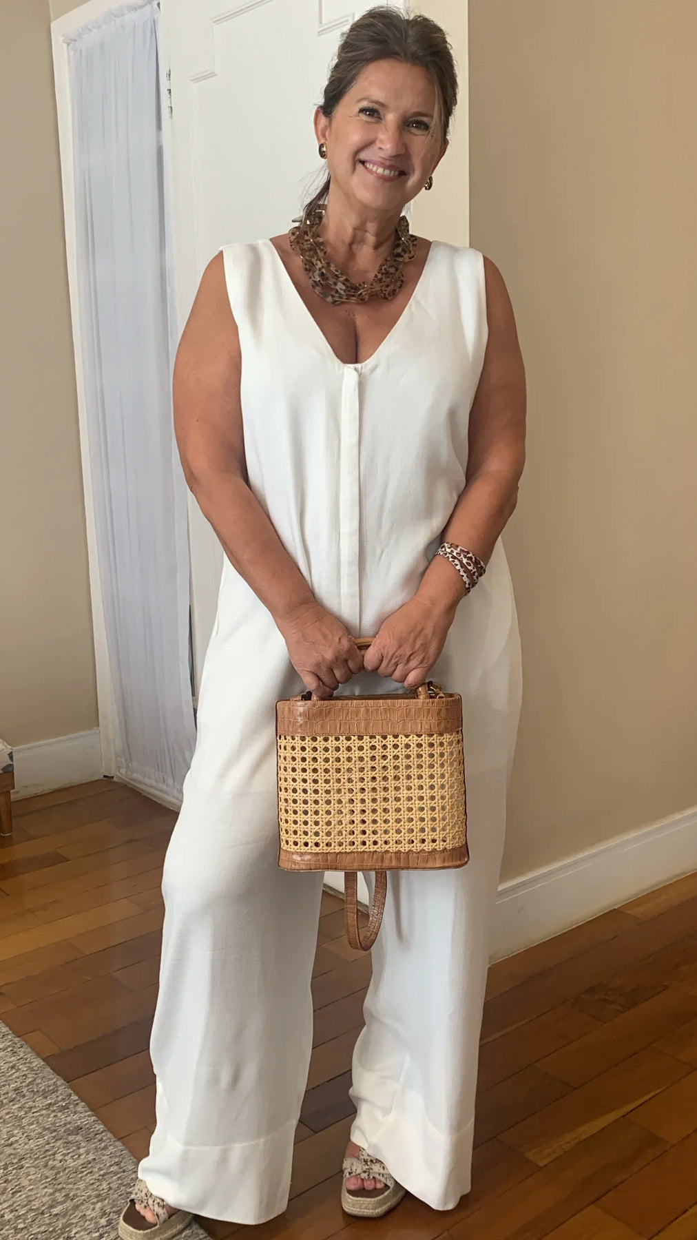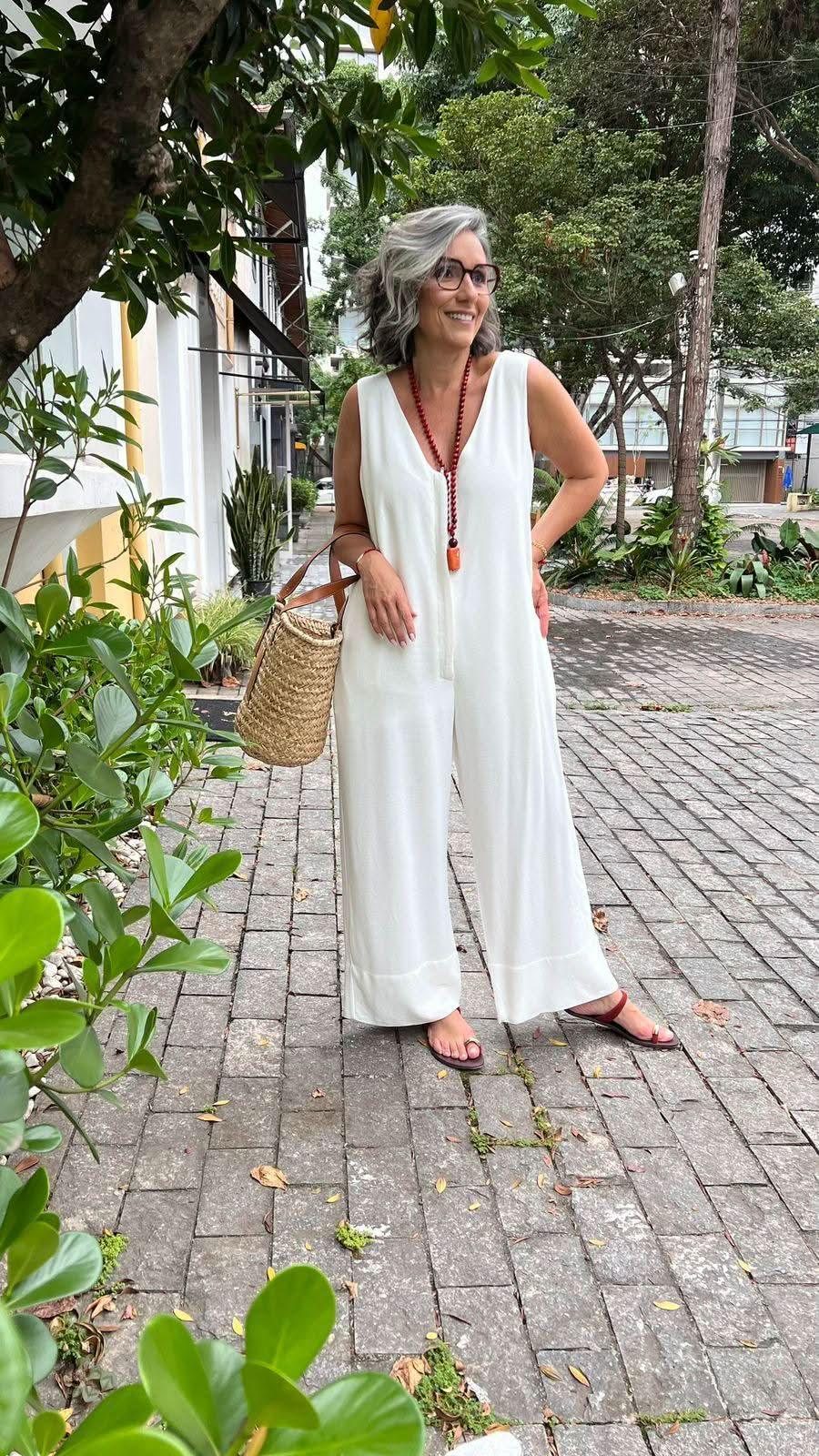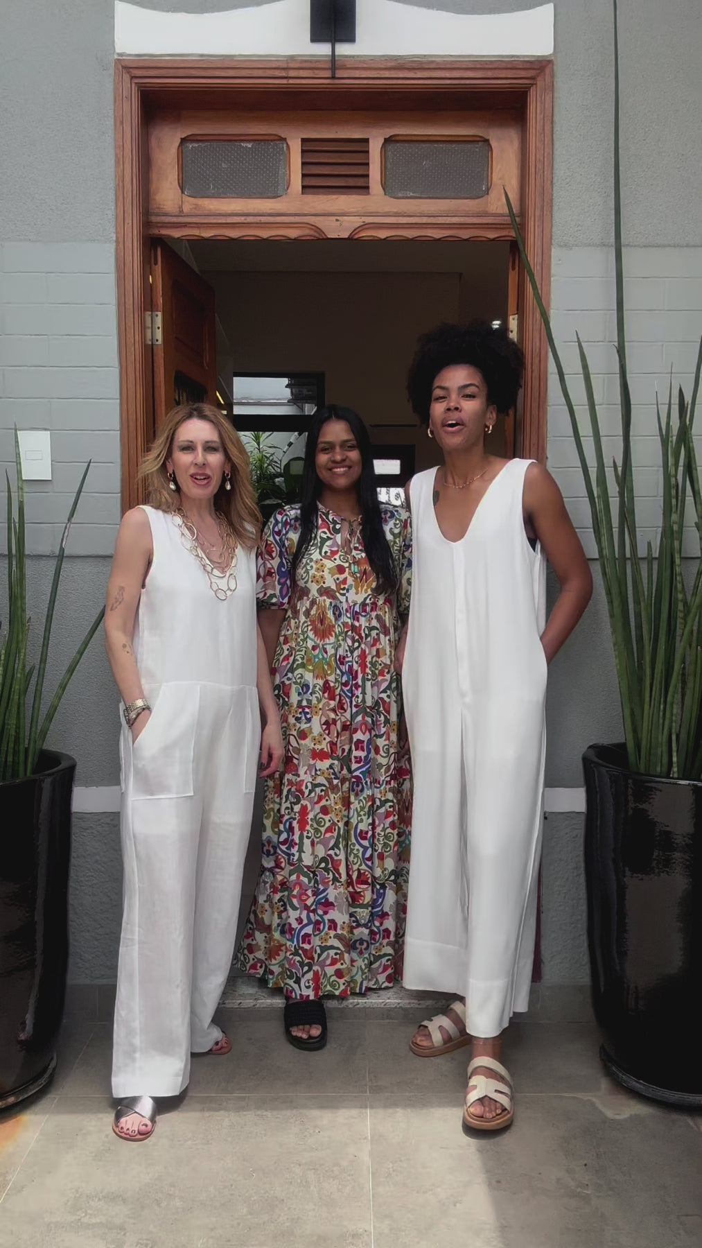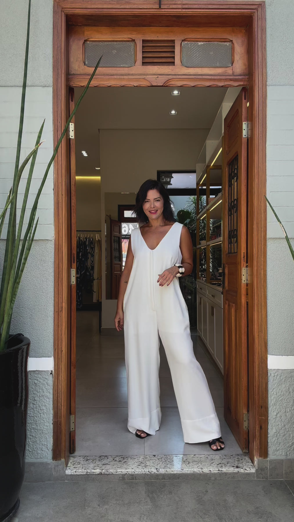 Este macacão da EZILDINHA tem modelagem ampla, zíper frontal e calça com detalhe na barra. Nossa Viscose Francesca importada é fresquinha e oferece um toque natural e confortável, ideal para todas as estações.