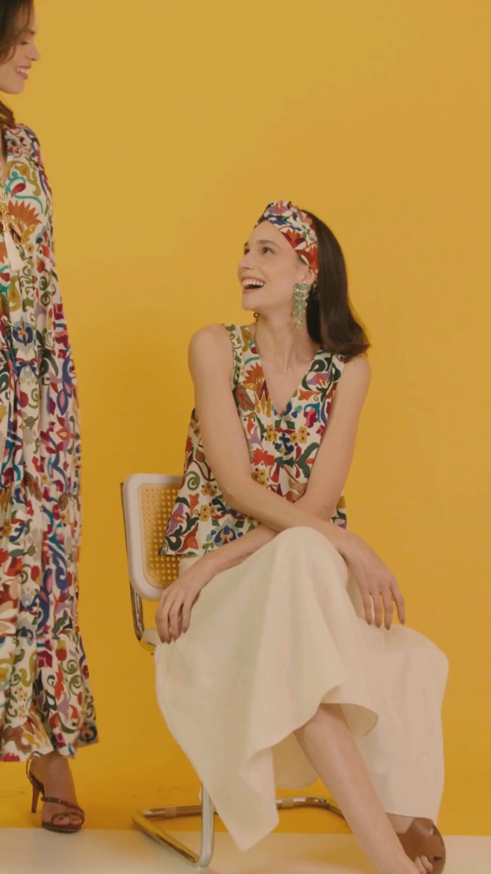 Com modelagem ampla de inspiração boho, o vestido proporciona movimento fluido e elegância descomplicada. Sua estampa exclusiva Tapeçaria foi inspirada no Suzani, bordado tradicional da Ásia Central e da Índia, conhecido por seus desenhos florais e geométricos ricos em cores e significados culturais. Essa referência artística traz à peça um ar autêntico, sofisticado e atemporal, celebrando a herança dos trabalhos manuais ancestrais.