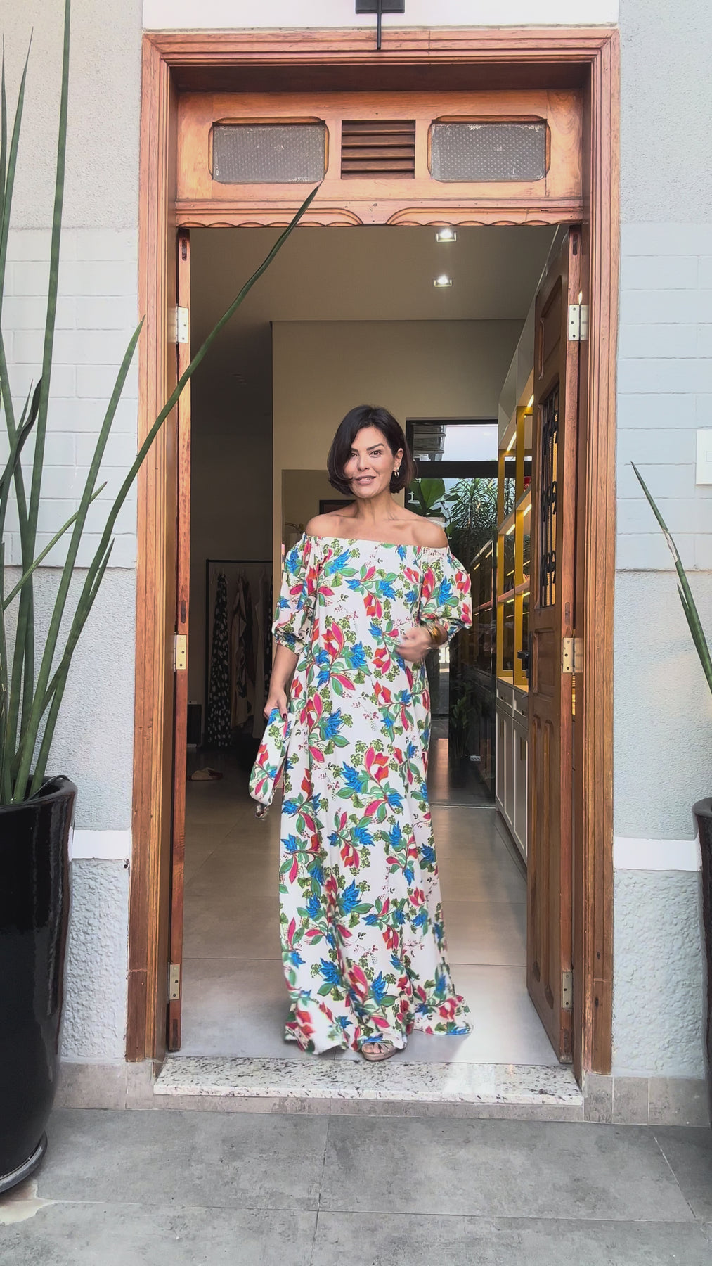 Um jardim em flor para vestir — o Vestido Ciganinha Garden EZILDINHA é a celebração da natureza em sua forma mais vibrante e feminina. Inspirado nos jardins botânicos europeus em plena primavera, este vestido traz uma estampa exclusiva onde flores e folhagens em tons de azul royal, vermelho vibrante, rosa pink, verde esmeralda e verde oliva dançam sobre uma base off-white imaculada. Uma peça criada para mulheres que florescem em qualquer estação e entendem que a verdadeira elegância está em celebrar a vida com cor e alegria. Do brunch ao ar livre ao casamento diurno, do passeio no jardim ao almoço especial, o Garden transforma cada momento em uma celebração da feminilidade. Use com sandálias douradas e brincos de argola para um visual fresh e sofisticado, ou eleve a produção com salto anabela e clutch metalizada para ocasiões especiais.